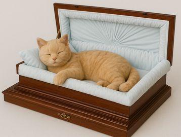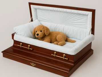 Our Pet Casket option is a dignified add-on available for both cremation and funeral services. Each casket is thoughtfully crafted to provide a peaceful resting place and a respectful farewell. Custom casket pieces are available, allowing families to personalize the tribute and honor their beloved pet’s life and memory. For more information on custom casket pieces please contact us for more details and we can help assist.